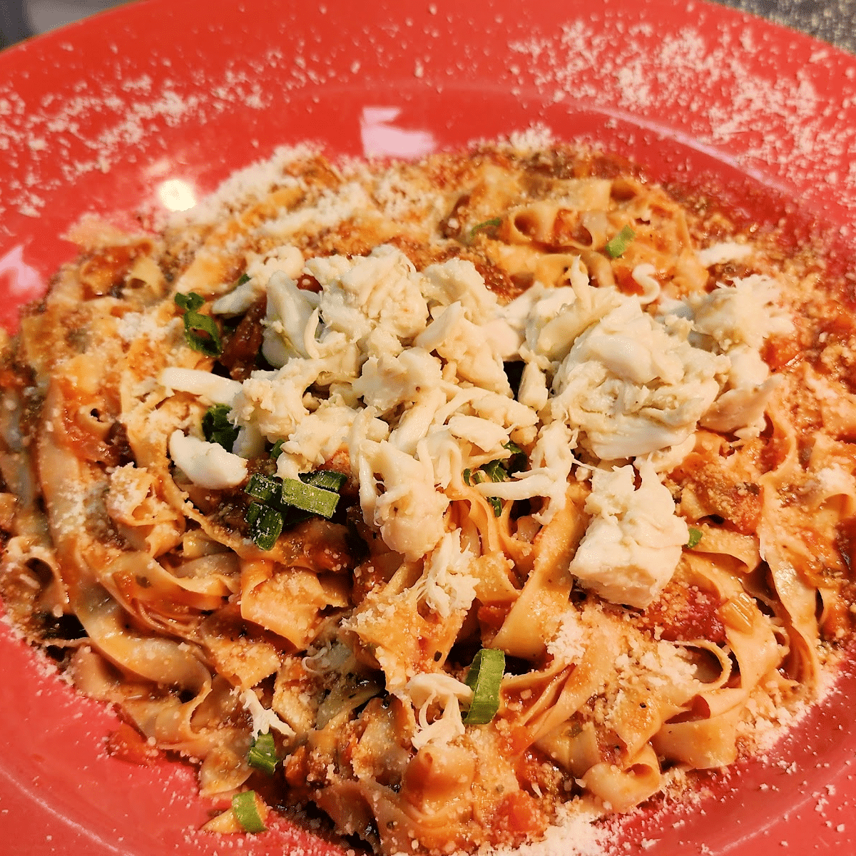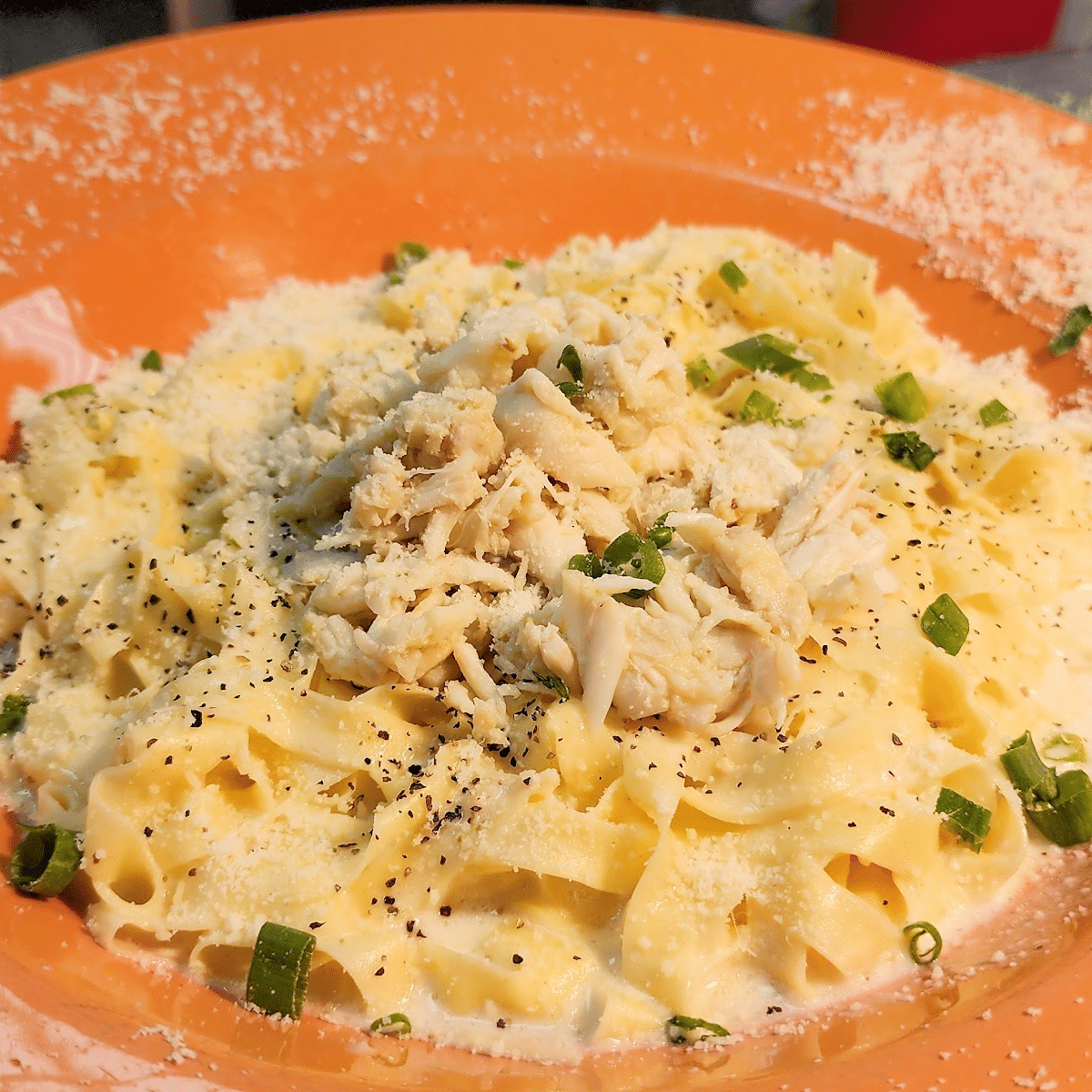 This mouth-watering dish is served with your choice of classic Alfredo or Marinara Sauce and topped with freshly grated Parmigiano-Reggiano cheese with optional add-ons of shrimp, crabmeat and chicken. Make it a real showstopper with a Soft Shell Crab!